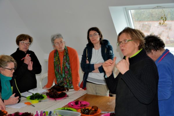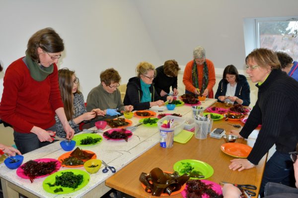 Régine Quéva très connue pour sa cuisine aux algues notamment et pour son passage à Thalassa et dans de nombreuses émissions radio et TV, propose chaque année plusieurs sorties algues et cuisine aux algues sur notre commune. La collecte se fait d’abord au Royau et l’atelier cuisine au bourg; pensez à vous inscrire.